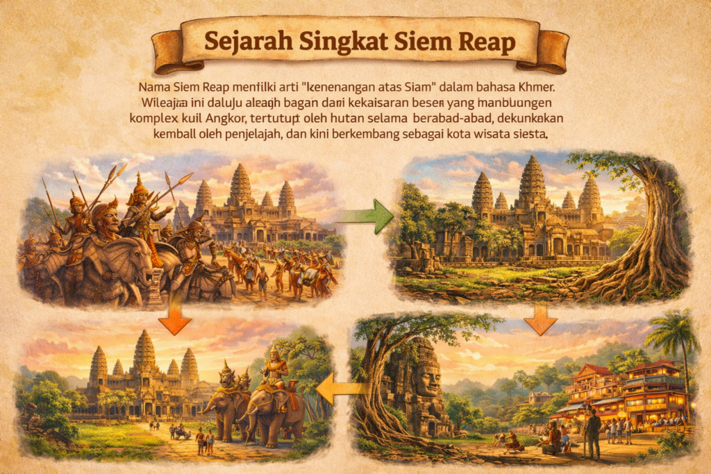 Nama Siem Reap memiliki arti yang menarik dalam bahasa Khmer. Secara harfiah, nama tersebut sering diartikan sebagai “kemenangan atas Siam,” yang merujuk pada konflik sejarah antara kerajaan Khmer dan Siam pada masa lampau.