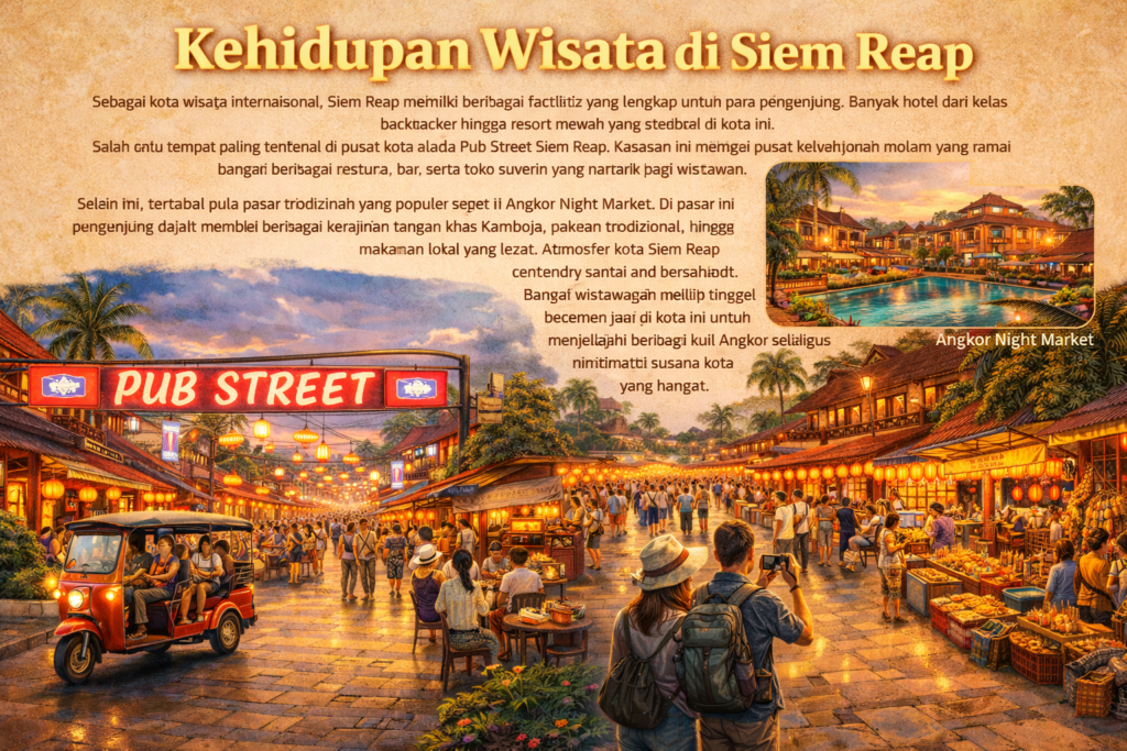 Siem Reap merupakan kota wisata yang memiliki peran penting dalam memperkenalkan kekayaan sejarah dan budaya Cambodia kepada dunia. Dengan keberadaan Angkor Wat yang menjadi salah satu keajaiban arsitektur dunia, Siem Reap telah menjadi destinasi impian bagi banyak wisatawan internasional.