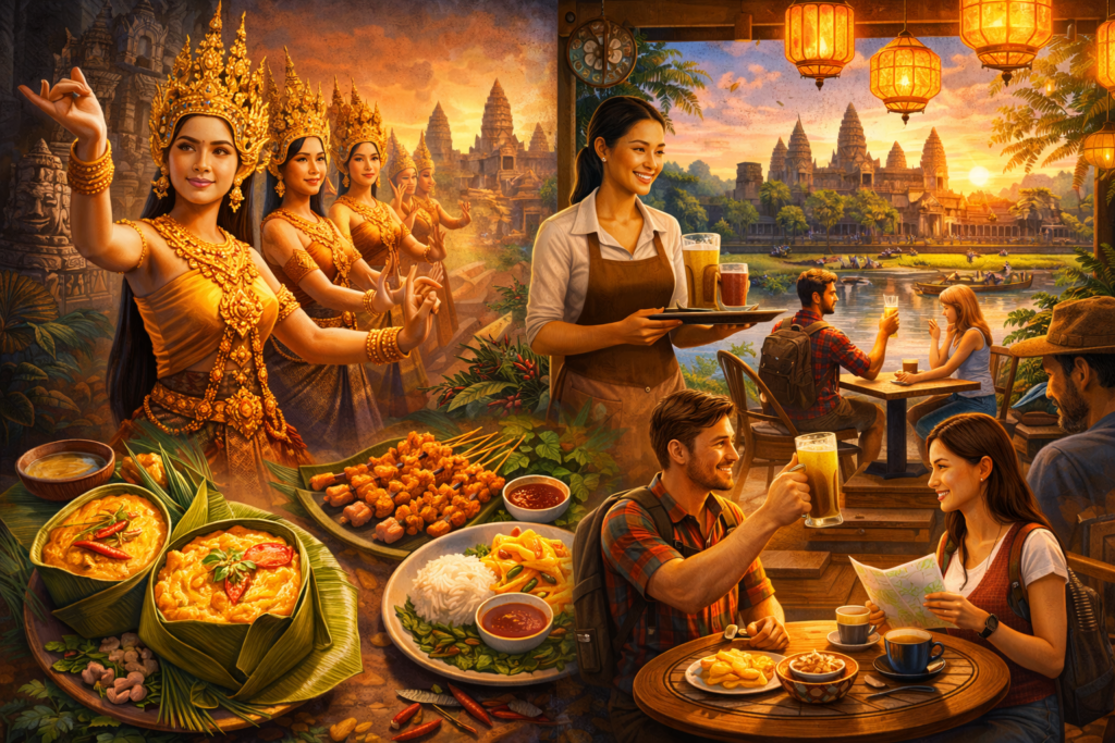 Wisatawan juga dapat mencicipi berbagai makanan khas Kamboja yang tersedia di restoran maupun pasar lokal. Hidangan seperti Fish Amok, Lok Lak, dan berbagai makanan berbumbu khas Khmer menjadi favorit para pengunjung.